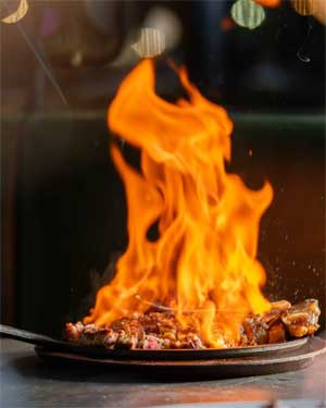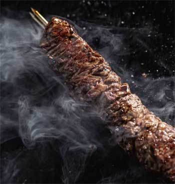 We ordered the BBQ Rum Special (NIS 64 per 100 grams), which arrived sizzling on a plancha. Then the server poured rum over the meat and set it on fire. At the table. Flames. Drama. Applause. Dinner theater at its finest.