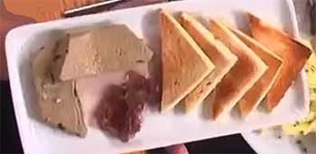 Shai is especially proud of the French chicken liver terrine, one of his specialty dishes.  As a master chef Shai has reinvented the classic non-kosher chicken liver terrine using vegan butter and soy to keep it kosher without losing  its creamy texture. The dish arrives as two thick, silky slices with onion confit and triangles of toasted bread. The meat was smooth, rich, and absolutely French.